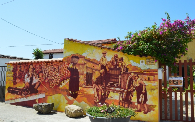 Luogo la strada dedicata alla sovrana Eleonora D’Arborea si possono ammirare pregevoli murales dedicati alla vita del paese. I murales hanno infatti per soggetto il lavoro e le attività tradizionali della comunità come la raccolta dello zafferano, la lavorazione del pane, i ricami delle donne, la raccolta dei i frutti della terra come i limoni e fichi d’india.