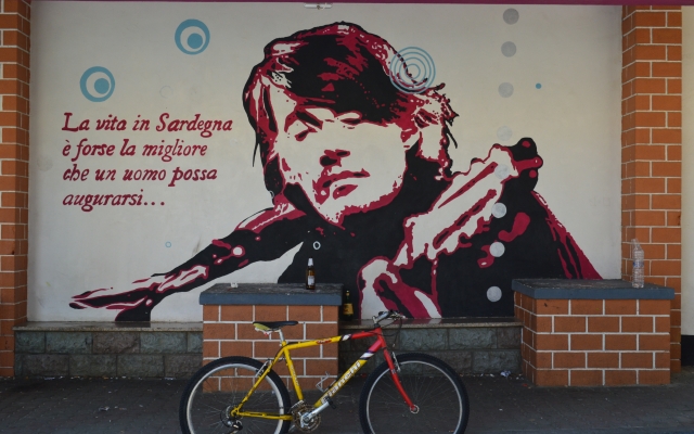L’artista di fama internazionale Giorgio Casu (conosciuto come Jorghe e che ha recentemente realizzato un ritratto di Obama che si trova esposto alla Casa Bianca) è l’autore di un murales di 320 metri quadrati raffigurante Don Chisciotte a cavallo selvaggio e senza controllo che vuole rappresentare il popolo Sardo.